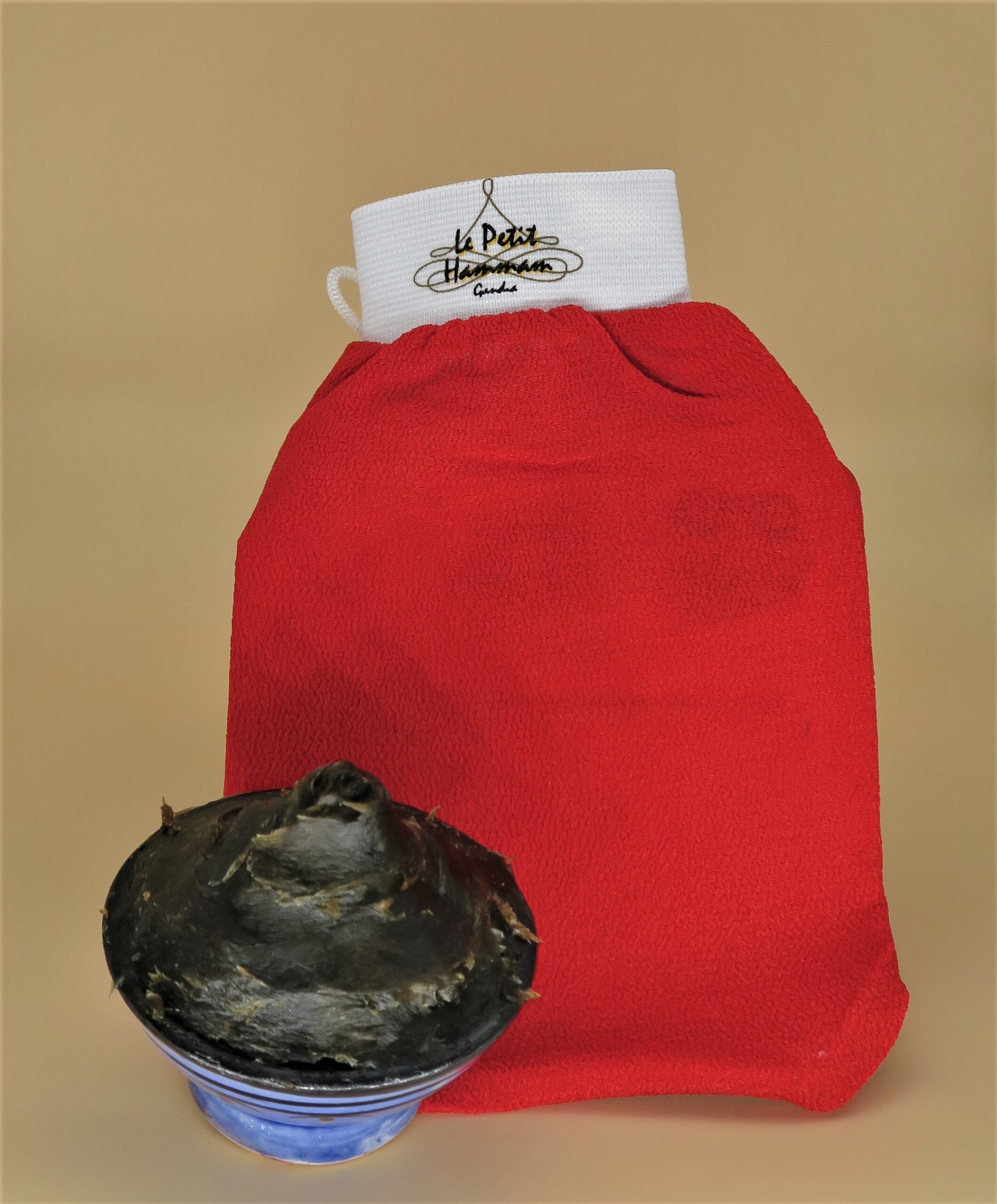 Pack 1 – Pack indispensable para un hammam con 1 guante de kessa mas 200gr de savon noir con eucalipto