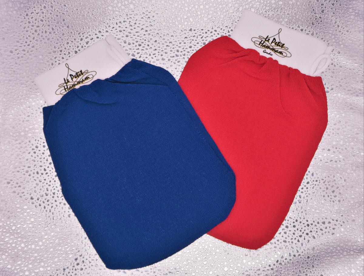 Guante de Kessa en dos colores para una exfoliación del cuerpo profundo. Mucho mas higiénico que los guantes de crin, ya que este se seca en solo dos horas y se puede lavar en la lavadora.
